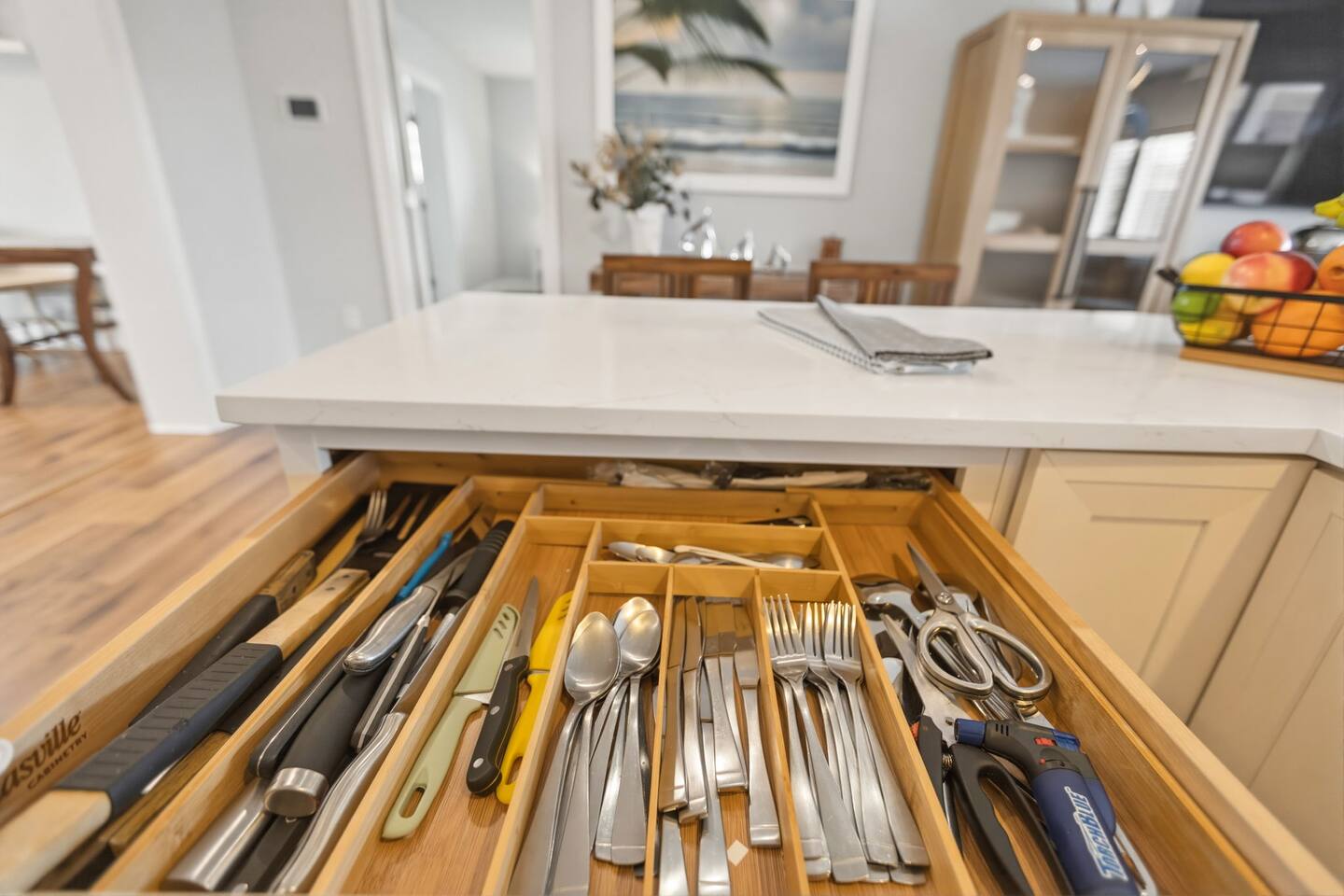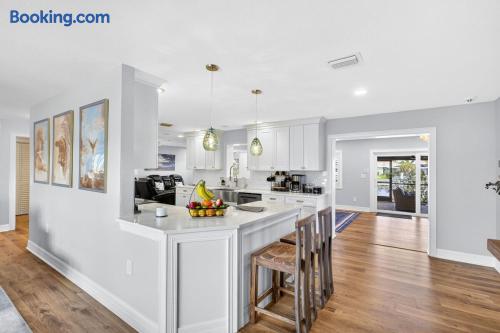 1. POOL & SPA: No glass near the pool or spillover spa. Children must be supervised at all times. Pool gate must remain closed and latched. No diving. 2. BOAT DOCK & LIFT: Use the 10,000 lb boat lift at your own risk. Do not exceed the weight capacity. Secure all lines properly. Report any dock damage immediately. Contact host for operational instructions before use. 3. NO SHOES INDOORS: Please remove shoes before entering the home to protect the flooring. 4. TRASH & RECYCLING: Take trash to the outdoor bins before checkout. Recycling goes in the blue bin. 5. KITCHEN: Please run the dishwasher before checkout. Do not leave dirty dishes in the sink. Clean the grill grate after each use. 6. THERMOSTAT: Please keep the A/C set no lower than 72°F to prevent system strain. 7. GARAGE: The attached garage is reserved for housekeeping and owner use only. Please park in the circular paver driveway. 8. EXTERIOR CAMERAS: A Ring doorbell camera is located at the front entrance and a security camera overlooks the dock area. No cameras are located inside the home. 9. NOISE: This is a quiet residential neighborhood. Please be respectful of neighbors, especially during quiet hours (10 PM – 8 AM). 10. CHECKOUT: Start a load of towels in the washer, take out all trash, load and run the dishwasher, and lock all doors.