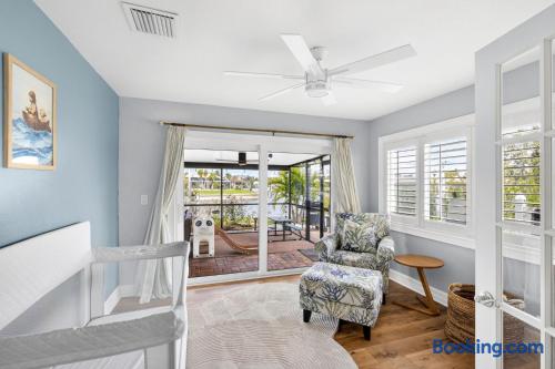 BOATING & DOCK DISCLAIMER: The private dock and 10,000 lb boat lift are provided as a courtesy amenity. Use of the dock and boat lift is entirely at the guest's own risk. Guests must request operational instructions prior to use. The host assumes no liability for any injury, damage, or loss associated with the use of the dock, boat lift, or watercraft. Guests are responsible for ensuring their vessel is properly secured at all times. Please ensure your vessel does not exceed the 10,000 lb lift capacity. SECURITY CAMERAS: For the safety and security of the property, the following exterior cameras are present: a Ring doorbell camera at the front entrance and an exterior security camera overlooking the dock area. No cameras are located inside the home. All cameras monitor exterior areas only. POOL & SPILLOVER SPA HEATING: The heated saltwater pool and spillover spa can be heated for an additional daily fee, highly recommended during winter months. Please request heating at least 48 hours prior to arrival so the water is perfectly warm when you step through the door. FAMILY FRIENDLY: Traveling with little ones? We provide a crib/pack-n-play and a high chair upon request to make packing lighter for parents. The bunk room is a hit with kids! LOCATION: Punta Gorda Isles is a premier boating community just minutes from Fisherman's Village, historic downtown Punta Gorda, Charlotte Harbor, and the Peace River. World-class tarpon fishing, shelling on barrier islands, and Gulf beaches are all within easy reach by boat or car.